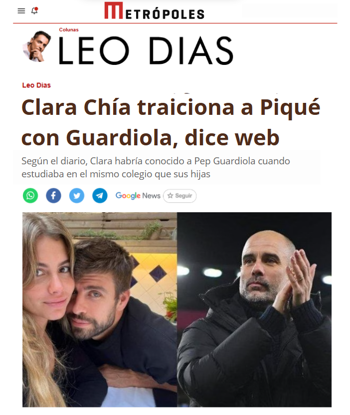 Y lo más fuerte es que esto no para ahí… Recientemente, Clara Chía le fue infiel a Piqué usando ese mismo disparador con otro hombre casado y superpoderoso: Pep Guardiola, entrenador del Manchester City.